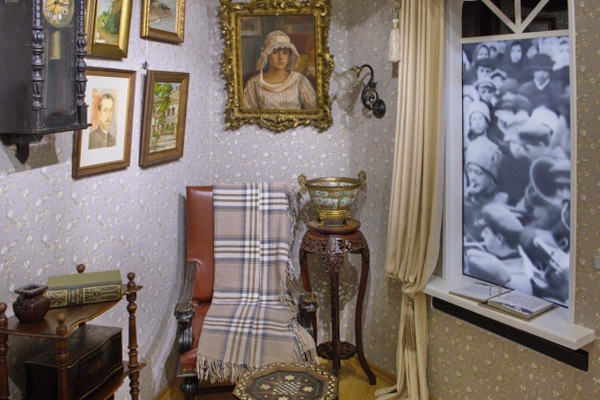 Инсталляции музейного дворика передают особое отношение автора к природе. Здесь же расположены стенды с цитатами из произведений писателя, раскрывающие различные значения образа сада в его творчестве.