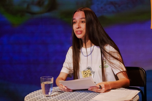 Третий блок – самый интересный. Сказки от нейросети, которые прочитали волонтеры Сбербанка и Татьяна Привалова – активная участница «Театра равных», девушка слабовидящая, и в отличие от своих партнеров на площадке она не читала, а рассказывала сказки зрителю, которые выучила за короткое время наизусть.