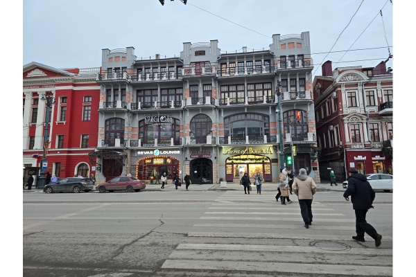 В первом десятилетии ХХ века Большая Дворянская (сегодня – проспект Революции) уже была главной улицей города. Между строго элегантными особняками в стиле ампира и классицизма прогуливалась публика самого разного рода – от богатейших людей города до гимназисток. И вдруг среди этого спокойствия быстро – за год и три месяца – выросло яркое четырехэтажное, ни на что не похожее, бросающее всему вызов здание.