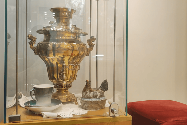 Так, например, воронежским коллекционером, архитектором Анатолием Бородецким был подарен старинный самовар. Рядом с самоваром в экспозиции представлено всё, что было нужно для чаепития в то время, когда жил Сергей Есенин: блюдце, чайная чашка, ложечка и маслёнка. Как рассказала Надежда Самсонова, этим экспонатам здесь придаётся особое значение не случайно – поэт очень любил пить крепкий горячий чай.