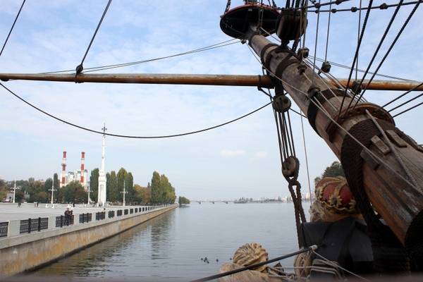 – Сначала на Павловском судостроительном заводе был создан металлический каркас той части, что ниже ватерлинии (линия соприкосновения спокойной поверхности воды с корпусом плавающего судна – Прим. ред.). Основание пришло своим ходом из Павловска по Дону и пришвартовывалось к Адмиралтейской площади. А деревянная часть изготавливалась мастерами карельской верфи «Варяг». Они специализируются на создании исторических кораблей. Не далеко от места, где сейчас стоит корабль был строительный пирс, на котором судно и собиралось, – показала Елена Селезнева.