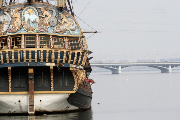К слову, сейчас судно редко совершает плаванья, если только во время испытаний или каких-то торжеств. Так, например, в 2022 году к 350-летию Петра Великого корабль принимал участие в световом шоу, отчалил от Адмиралтейской площади и прошелся по Воронежскому водохранилищу.
