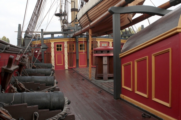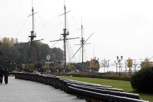 Пушек в музее тоже, естественно, не 58, а гораздо меньше, иначе бы не разместить другие экспонаты. Орудия, которым не хватило места на судне, установлены на Адмиралтейской площади.