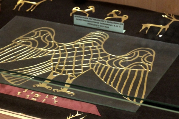 И, наверное, еще один яркий экспонат – погребальный балдахин с изображением золотого орла.