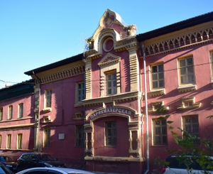 В основе архитектуры здания – русский стиль, благодаря которому оно похоже на теремок. Окна обрамлены фигурными наличниками, и кажется, что оттуда красотами города любуется юная царевна. Сквозь окна проходит поясная арка, которая на третьем этаже украшена цветочным орнаментом. А карниз щедро усыпан резной вязью. Яркие плиточные вставки с витыми, отзеркаленными элементами придают зданию дух Востока. Несмотря на их небольшой размер, они притягивают взгляды многих прохожих. Русский стиль соседствует с готикой, которую можно разглядеть в «рогатых» фронтонах с башенками.