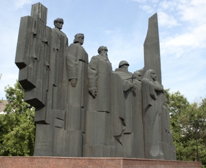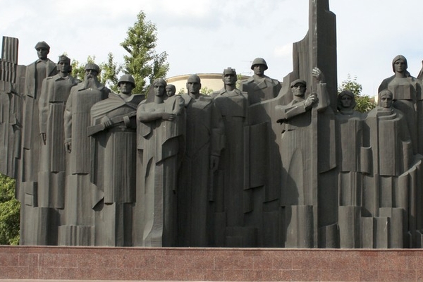 Оторвавшись от карты, отец с сыном отправились к монументу из двенадцати фигур, созданному воронежским скульптором Федором Сушковым. Ваятель постарался поместить здесь всех, от тружеников тыла до военных: партизана, офицера, девушку-санинструктора, автоматчика, летчика, морского пехотинца, танкиста, женщину с младенцем, рабочего со знаменем, рабочую, колхозницу и девушку-комсомолку.