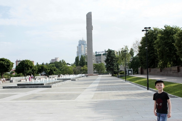 Осмотрев всю площадь, отец и сын отправились дальше – к памятнику детям, погибшим в Саду пионеров.